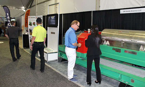 展會上很多客戶對我們的22英寸的離心機表示出了強烈的興趣。我們離心機的轉(zhuǎn)鼓主要部件由2205雙相不銹鋼離心澆鑄而成,其他部件由316L不銹鋼制作而成。轉(zhuǎn)鼓里的螺旋推進器鑲嵌了超過4mm的耐磨合金片,能夠有效提高使用壽命。為了滿足加拿大市場所要求的CSA標準,我們展會離心機配備了符合CSA防爆標準的電機(125HP和50HP)以及變頻控制柜。從技術(shù)規(guī)格上來說,冠能的GNLW553-VFD離心機與市場上使用廣的Alfa Laval Lynx 40相當,并且已經(jīng)在石油天然氣鉆井固控系統(tǒng)、鉆井廢棄物處理以及隧道盾構(gòu)和淤泥處理等行業(yè)得到了廣泛的應(yīng)用。